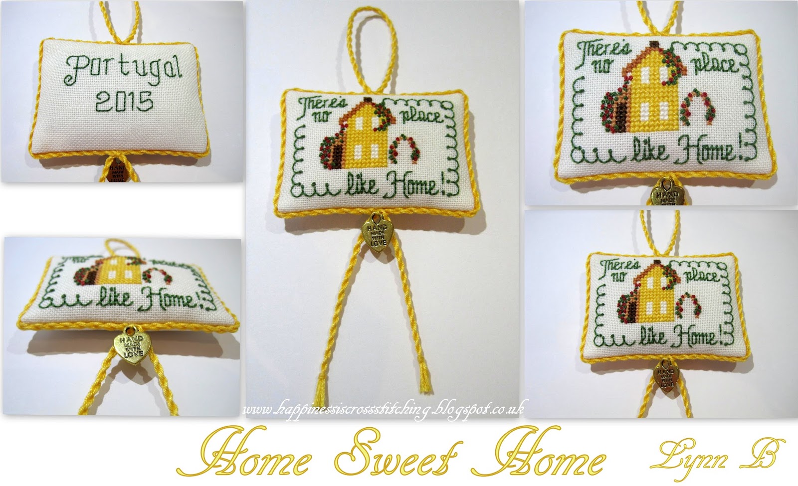I have made this for a friend who is moving to Portugal, I stitched it using DMC stranded cotton and 32 count murano fabric, the cord is hand made using the dmc thread and I made the little bag topper using Photoshop.