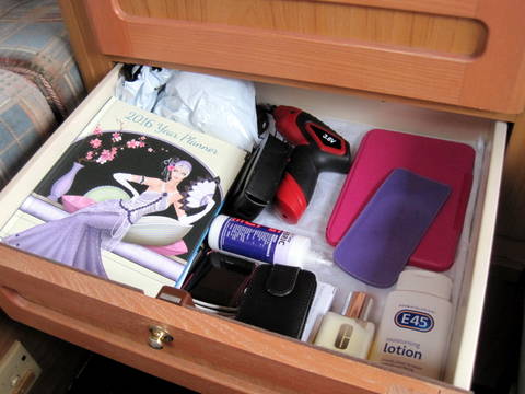 Nice to see how you arrange all your creative stuf in the motorhome. Handy those drawers, we don't have them, so I have to put mine in a box, but that works also :-)