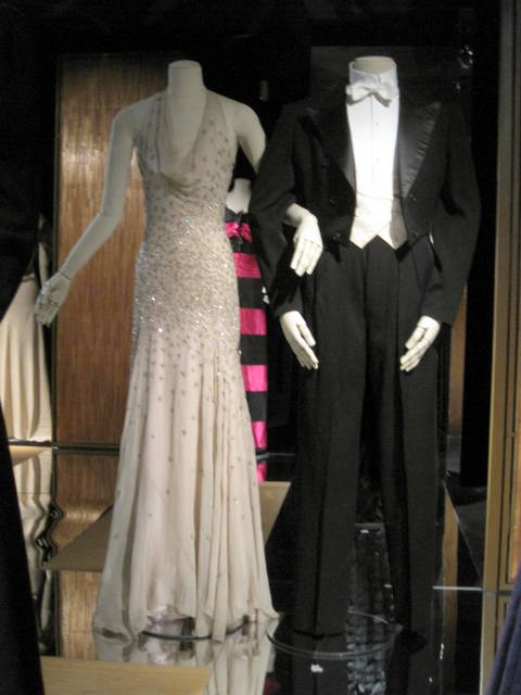 How cool! I love looking at fashion from days gone by :). I think my favorite is either the dark blue ball gown or the gold one on the stairs behind the dark pink.